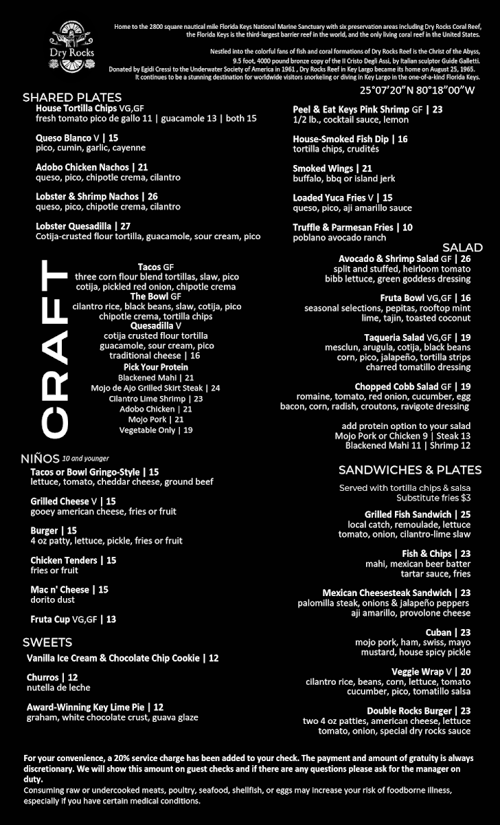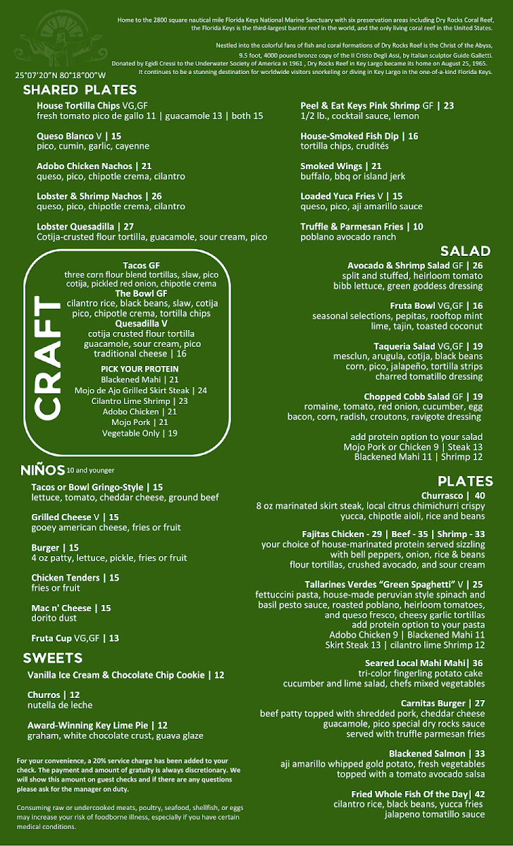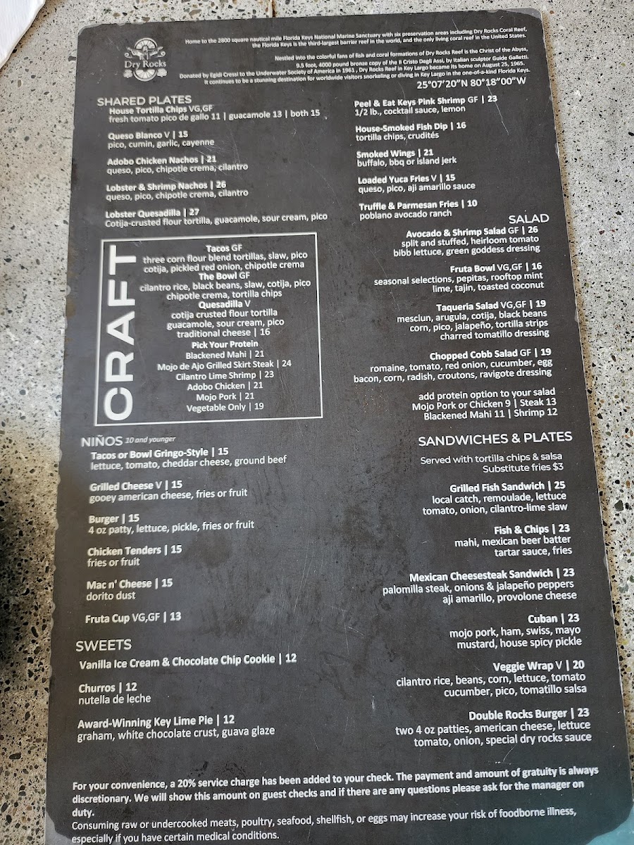 Welcome to Dry Rocks, the culinary gem located in Key Largo, FL. This vibrant restaurant, nestled within Baker’s Cay Resort, boasts a menu that tantalizes your taste buds with fresh, island-inspired dishes. The star of the show is the Avocado & Shrimp Salad at $26, featuring heirloom tomatoes and a creamy green goddess dressing. For a shared experience, try the Lobster & Shrimp Nachos—a perfect blend of flavors for $26, or indulge in the smoky goodness of the House Smoked Fish Dip for $16.